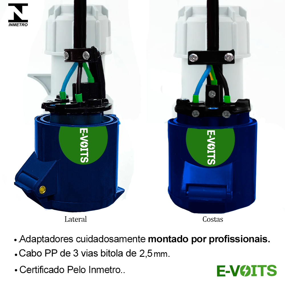 • Para Adaptadores de 5 e 10 mts: Cabo PP de 3 fios 4,0mm (16a) e 6,00mm (32a) com revestimento Anti-Chama.